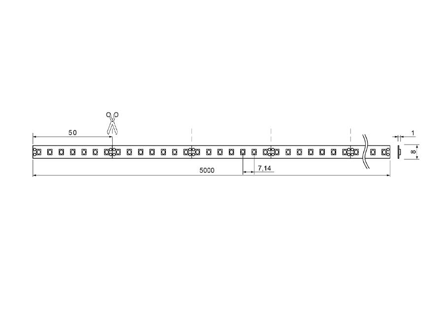 De strip is eenvoudig te scheiden, door de handige knipsegmenten van 50mm met 7 LEDs en snel te monteren door 5m flexibele printplaat inclusief 3M plakband.